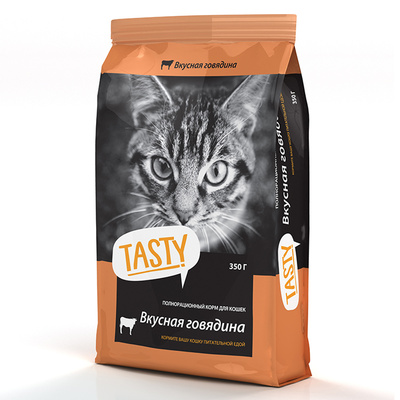 Вкусная говядина (TASTY) – это сухой повседневный полнорационный корм для взрослых кошек.