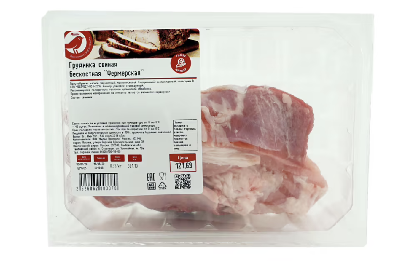 Грудинка свиная Фермерская (Филье) – сырой мясной продукт. Необходима термическая обработка1.