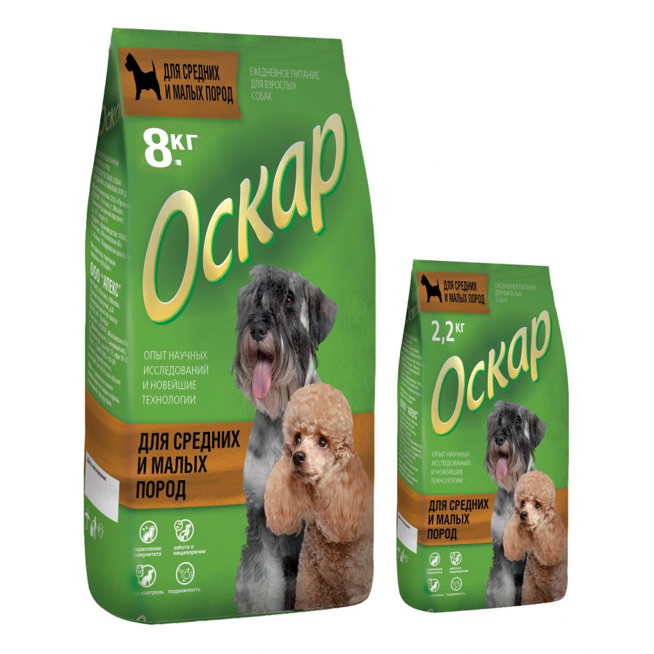 Для средних и малых пород (ОСКАР) – сбалансированный сухой корм для взрослых собак с нормальной физической активностью от бренда ОСКАР.