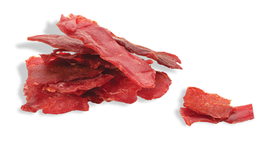 Для таких чипсов мясо нарезают тонкими пластинками, маринуют в соли и специях, а затем подсушивают в термокамере. Лишняя влага удаляется, ломтики приобретают необычный вкус и приятную консистенцию.2