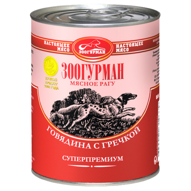 Настоящее мясо Говядина с гречкой – это влажный корм для собак (мясное рагу с гречкой) от торговой марки Зоогурман.