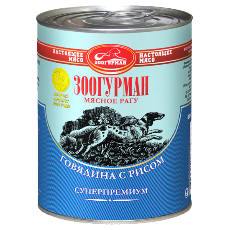 Настоящее мясо Говядина с рисом – это влажный корм для собак (мясное рагу) от торговой марки Зоогурман.