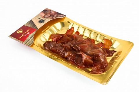 Пастрома – сырокопченый продукт из мяса птицы. Производитель: Мясокомбинат «Лесозаводский», бренд «Филимонов».1