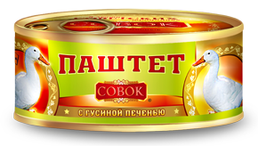 Паштет с гусиной печенью (Совок) – это стерилизованные паштетные консервы в виде вязкопластичной однородной массы мажущейся консистенции из субпродуктов, производства консервного комбината ООО «БАЛТКОМ».