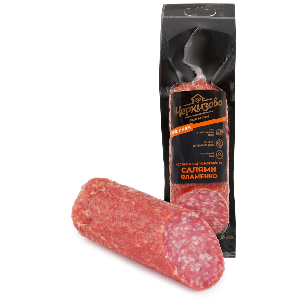 Салями «Фламенко» от «Черкизово» – это сырокопченая колбаса из свинины с пикантным, солоновато-пряным вкусом, аппетитным ароматом и приятным послевкусием.