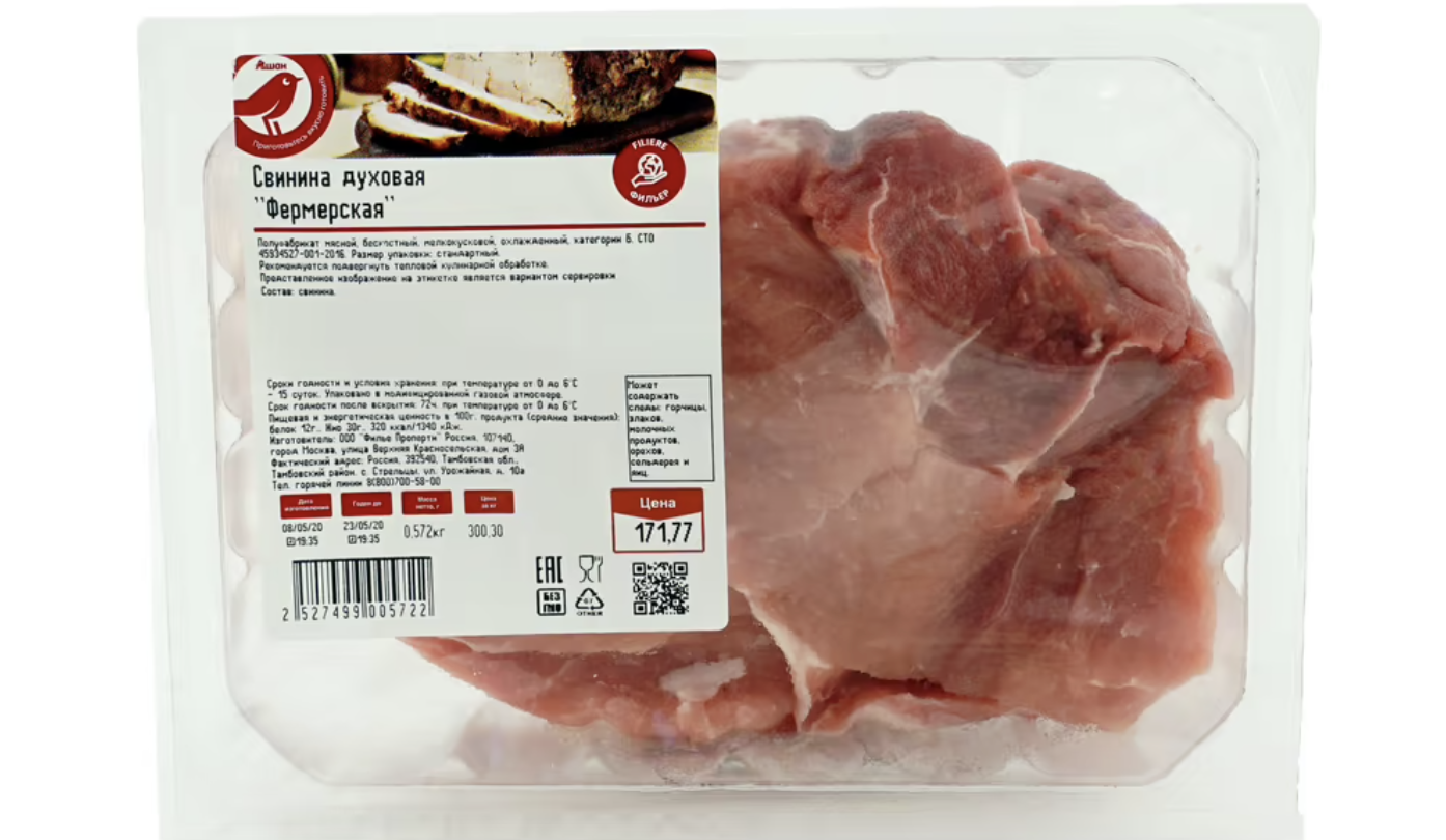 Свинина Фермерская духовая (Филье) – сырой мясной продукт. Необходима термическая обработка1.