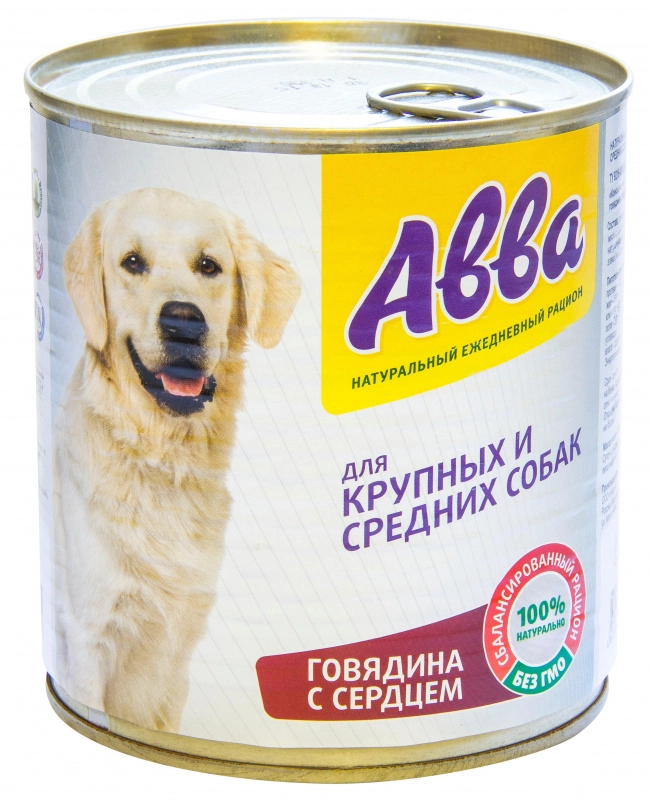 С говядиной и сердцем – консервы для взрослых собак средних и крупных пород от бренда «ABBA».