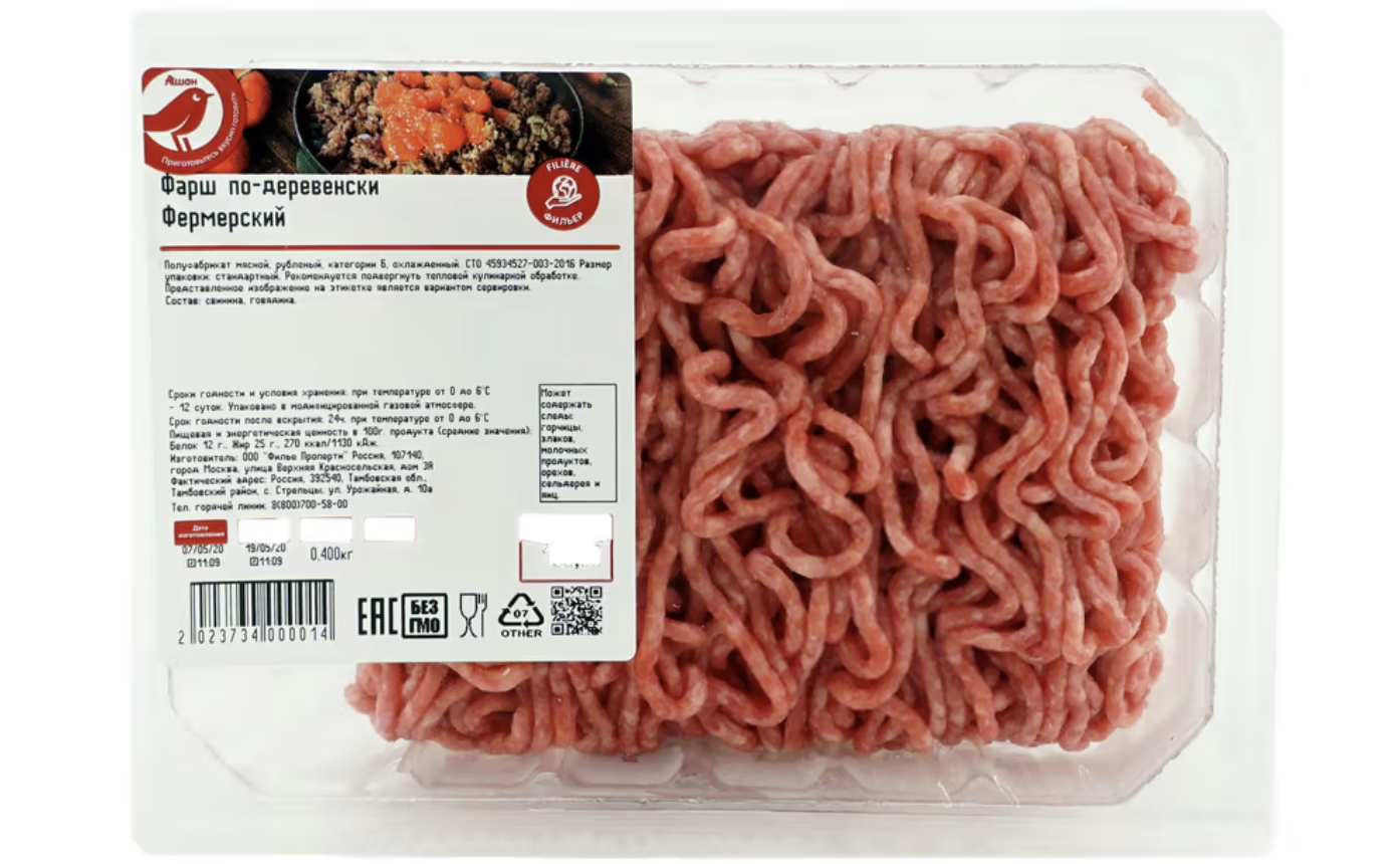 Фарш Фермерский Деревенский (Филье) – сырой мясной продукт. Необходима термическая обработка1.