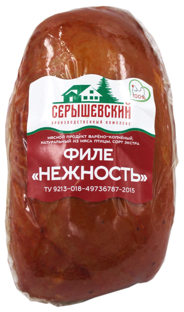 Филе Нежность – это готовый к употреблению охлажденный варено-копченый мясной продукт от производителя «Серышевский».