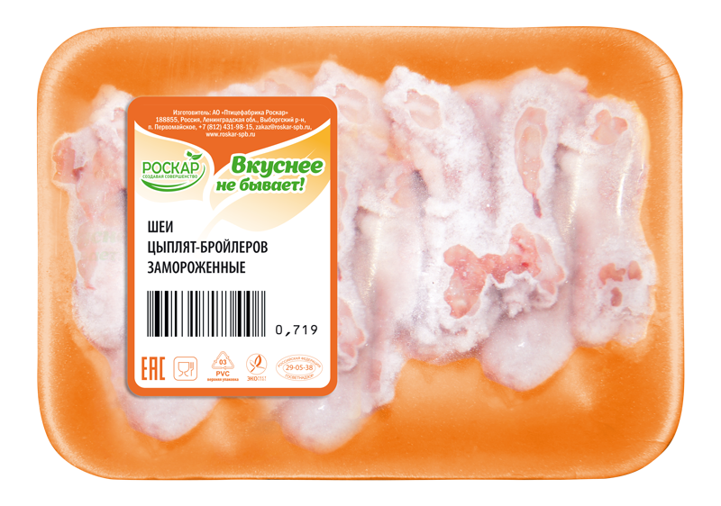 Шеи цыплят-бройлеров (Роскар) – это замороженный мясокостный полуфабрикат.