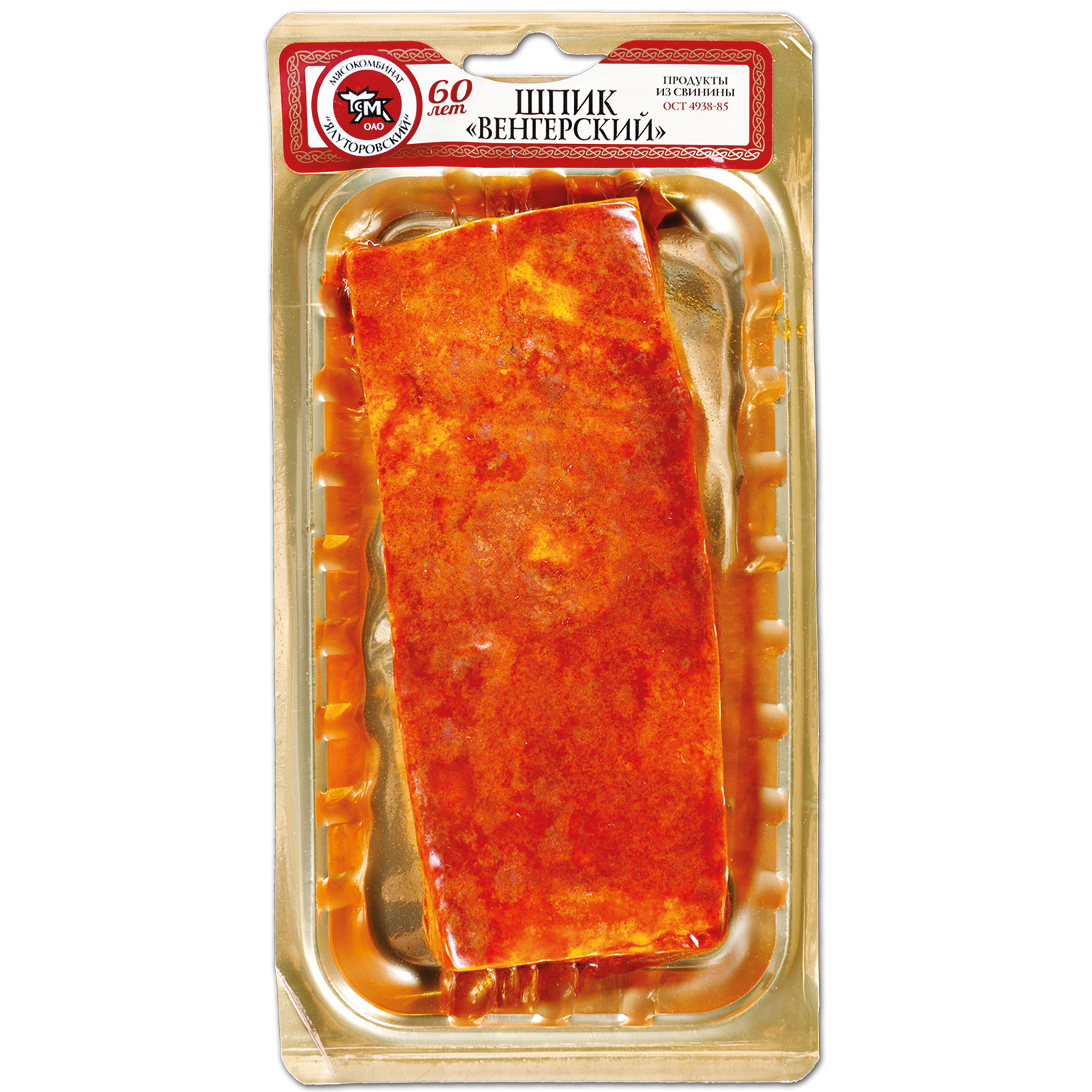 {{#vardefine:infoboxseo|1}}Шпик «Венгерский» (Ялуторовский мясокомбинат) – копченый мясной продукт из соленого сала, приготовленный по традиционному рецепту. Готов к употреблению.