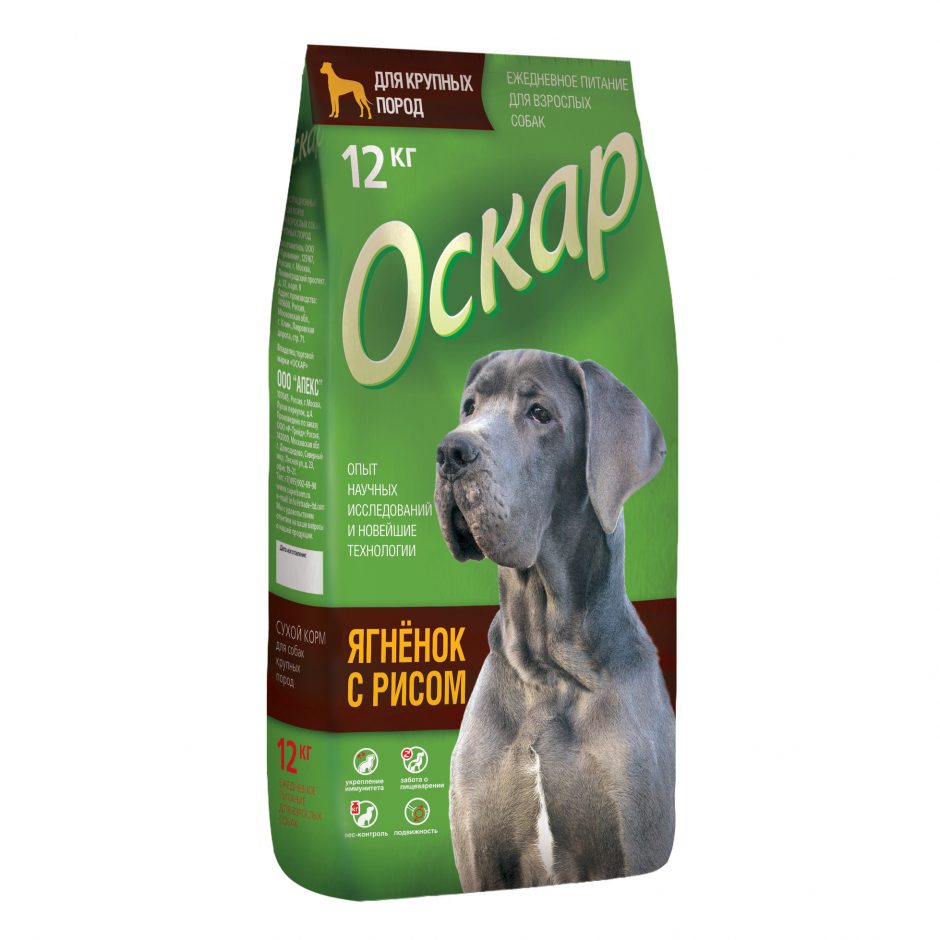 Ягненок с рисом – сбалансированный гипоаллергенный сухой корм для взрослых собак крупных пород с нормальной физической активностью от бренда ОСКАР.