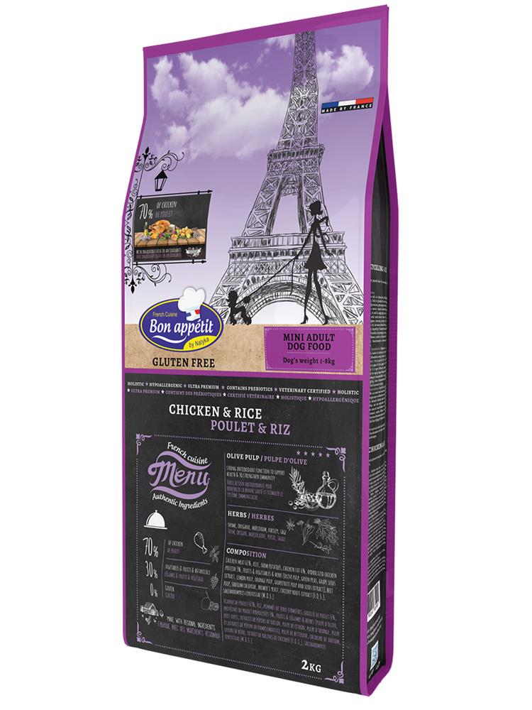 Adult Mini Chicken and Rice – это сухой корм с курицей и рисом для собак мелких пород от бренда Bon Appetit.