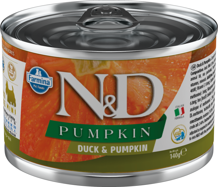 N&D PUMPKIN для собак мелких пород, с уткой и тыквой (Farmina) – это полнорационный беззерновой влажный корм.