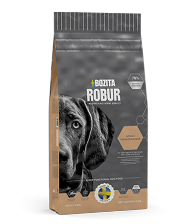 Robur Adult Maintenance – это функциональное полнорационное сбалансированное сухое питание от торговой марки Bozita для взрослых собак с нормальным уровнем активности.
