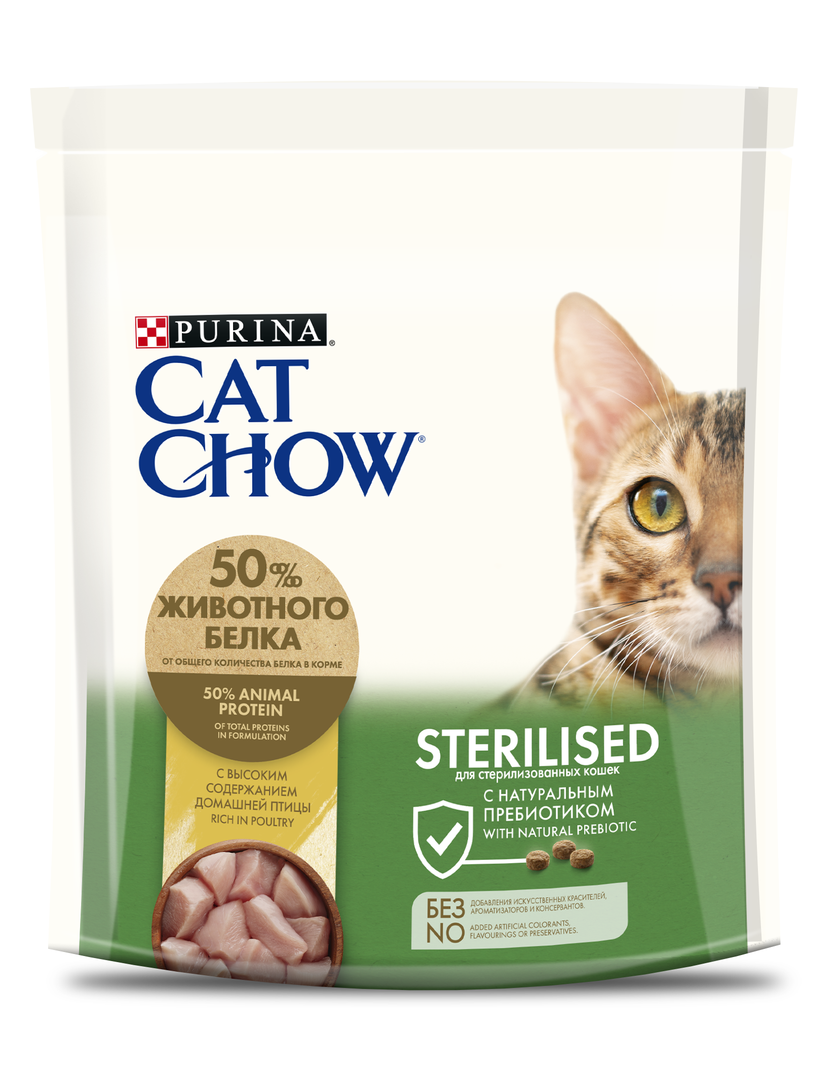 Sterilised – сбалансированный сухой корм для стерилизованных кошек и кастрированных котов от бренда Cat Chow.