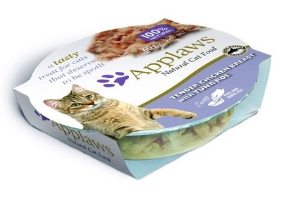 Chicken Breast with Tuna – это консервы с куриной грудкой и икрой тунца в желе от производителя «Applaws» для кошек.