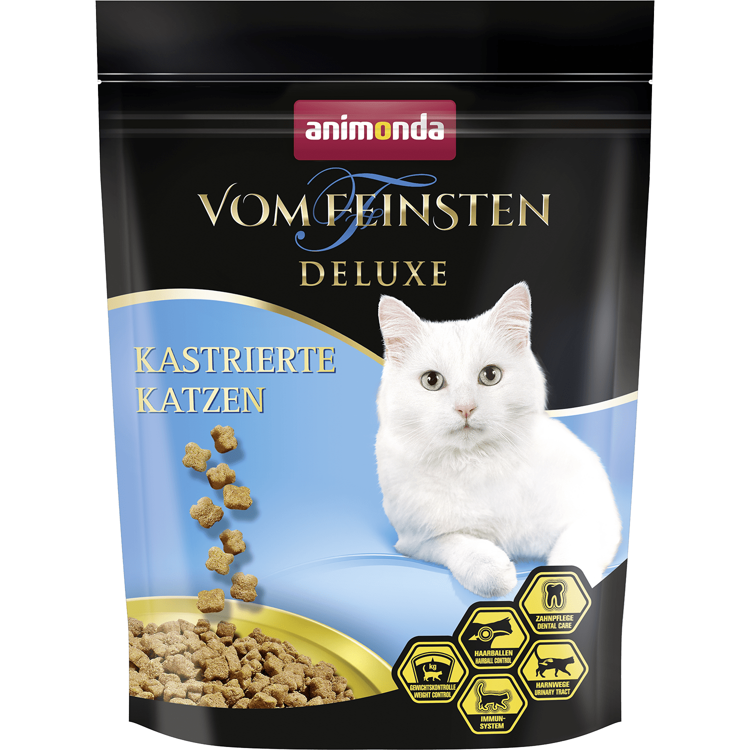 Vom Fenstein Deluxe Castrated для кастрированных (ANIMONDA) – это сухой корм для стерилизованных взрослых кошек (1-6 лет), сбалансированное полнорационное питание премиум класса. Тщательный отбор и качество сырья, высокая поедаемость и оптимальная усвояемость являются идеальной основой для благополучия и здоровья питомца.