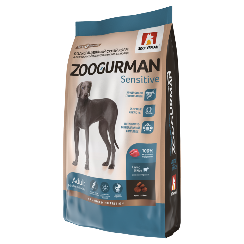 Zoogurman Sensitive Lamb and Rice (Зоогурман) – полнорационный сухой корм для собак средних и крупных пород с чувствительным пищеварением.