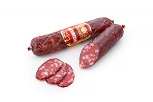 На сегодняшний день она стала вполне доступной для большинства покупателей. Вкусная, ароматная и тем не менее далеко не самая дешёвая, она отличается от прочих колбас пряным острым ароматом, плотной консистенцией, приятным солёным вкусом. Выраженная морщинистость с чётко различаемыми кусочками сала под оболочкой – всё это является характерными признаками этого известного продукта.2