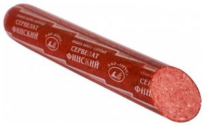 [[Файл:Колбаса варено-копченая Сервелат Финский (Атрус).jpg|мини|Колбаса варено-копченая Сервелат Финский (Атрус) <sup>[https://m.pokupki.market.yandex.ru/product/atrus-kolbasa-servelat-finskii-vareno-kopchenaia-400-g/100824552844?from_beru=1]</sup>]] | |||