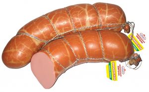 Вареная колбаса «Фермерская» под брендом «Царицыно» выпускается в форме батона в натуральной оболочке, упакованная в защитной атмосфере.