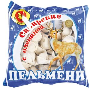 Пельмени «Сибирские» категории В от Ялуторовского мясокомбината изготавливаются из мяса оленины высшего сорта, отборной свинины, лука, чеснока и перца2.