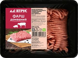 Фарш Домашний (Атрус) – подлежащий дальнейшей термической обработке замороженный мясной полуфабрикат от мясокомбината «Атрус».