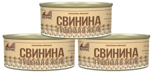Свинина тушеная в желе (Атрус) – это консервы, приготовленные из мяса, в строгом соответствии с Госстандартом, предназначенные для непосредственного употребления от мясокомбината «Атрус».