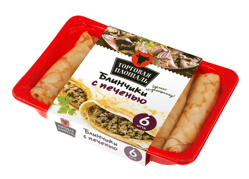 Блинчики с печенью – это подлежащий дальнейшей термической обработке мясной полуфабрикат от производителя «Торговая площадь».