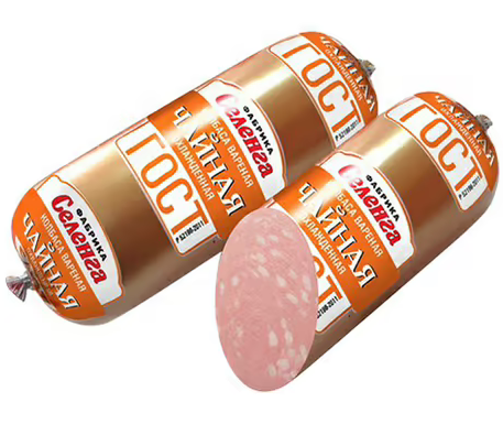 Вареная колбаса Чайная ГОСТ (Фабрика Селенга) – вареное колбасное изделие из говядины и свинины с добавлением шпика. Готово к употреблению.1