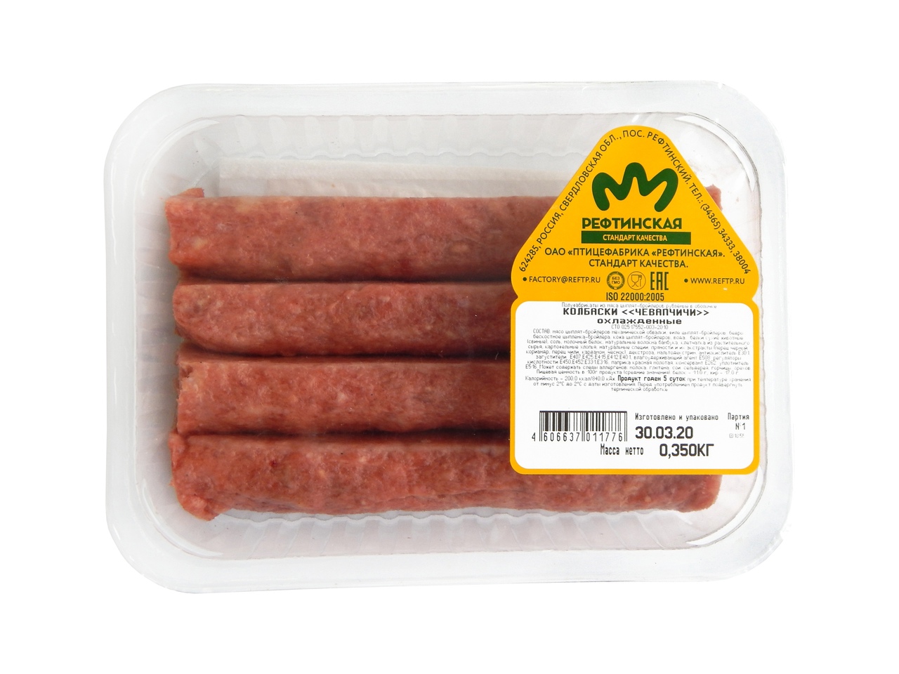 Колбаски Чевапчичи (Рефтинская) – мясной рубленный полуфабрикат, подлежащий дальнейшей термической обработке.