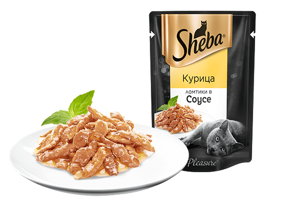 Ломтики в соусе Курица – влажный корм для кошек торговой марки Sheba.