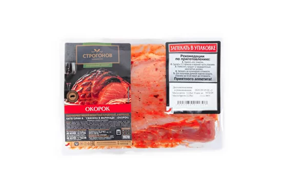 Окорок в маринаде – это подлежащий дальнейшей термической обработке охлажденный мясной полуфабрикат от производителя «Строгоновъ».