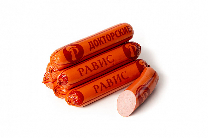 Сосиски Докторские из мяса птицы (Равис) – вареный мясной продукт бренда «Равис».
