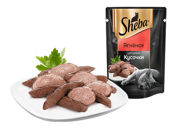 Цельные кусочки Ягненок – влажный корм для кошек торговой марки Sheba.