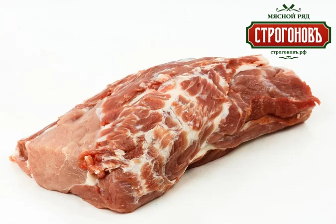 Шея свиная без кости под брендом «Строгоновъ» относится к мясным бескостным крупнокусковым полуфабрикатам из свинины категории Б.