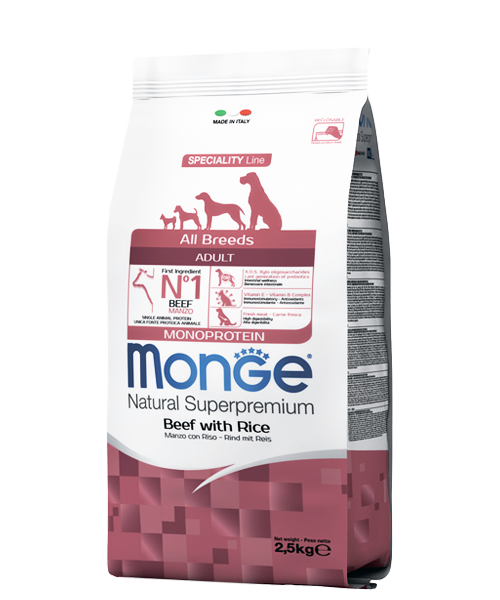 All Breeds Adult с говядиной и рисом (Monge) – это повседневный сухой корм для взрослых собак всех пород.