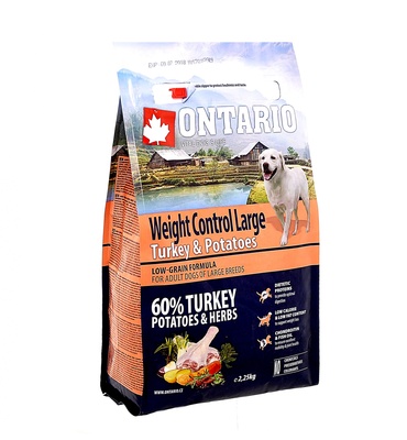 Large Weight Control Turkey and Potatoes – полнорационный сухой корм от чешского бренда Ontario для контроля веса у собак крупных пород.