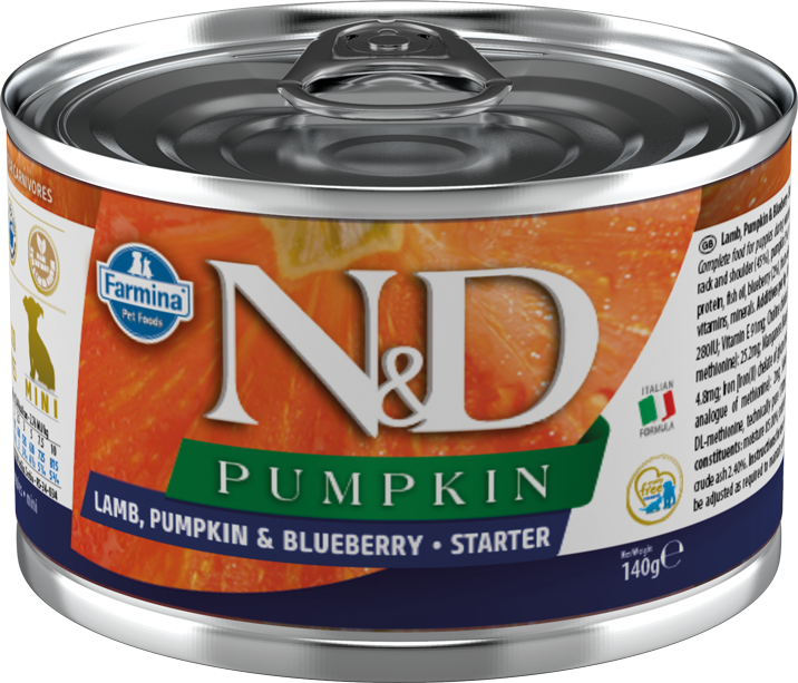 N&D PUMPKIN с ягненком, тыквой и черникой (Farmina) – это полнорационный влажный корм для щенков.