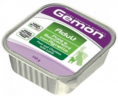 Pate and Chunkies with Lamb с ягненком – это консервированный супер-премиальный полнорационный корм для собак (1-6 лет) любых пород от итальянского бренда Gemon.